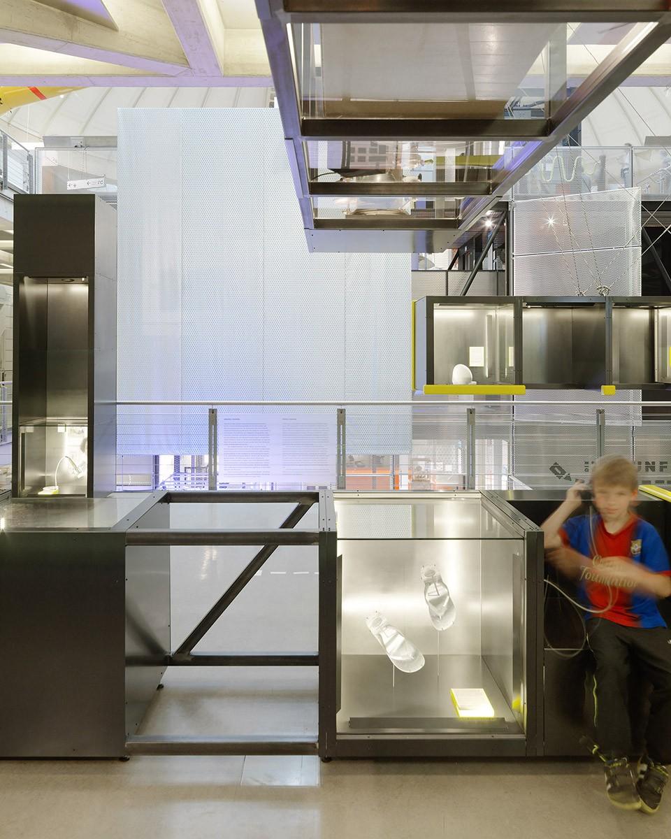 建筑师用钢铁打造了一个个如同梁柱般纵横交错的展柜,