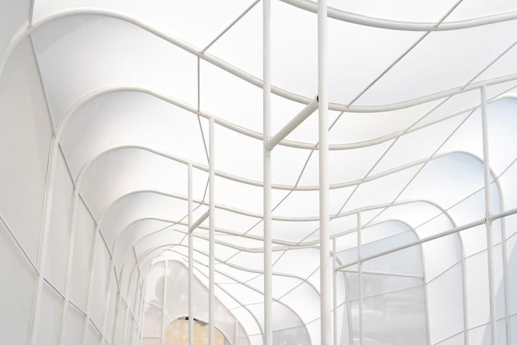 由于大量硬地景观和绿地空间稀疏的摩天大楼的存在,曼谷也一直面临着“城市热岛效应”问题。然而,随着曼谷被联合国教科文组织创意城市网络评选为“设计创意城市”,这是个绝佳的机会去创造一个实验性空间,以建设更好的城市,同时实现联合国的第11号可持续发展目标。受“云”的概念启发,展馆被设计成具有未来感的有机形式。它营造了清新的空间氛围,同时通过植被覆盖和工程技术的结合,形成了令人愉快的小气候。