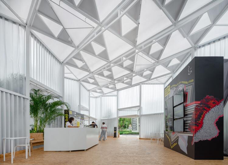 项目屋顶装载了太阳能系统,储备的太阳能可与传统能源一同,满足空间的日常所需,包括室内的空气净化系统、照明系统、甚至整个曼谷设计周的手机充电桩等。这一原型还可依据基地面积的大小相应变换尺寸。