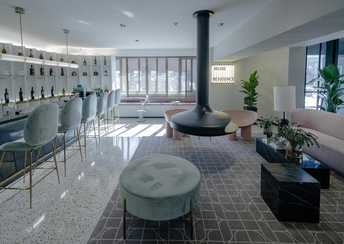 本项目拥有506㎡私享庭院,利用植物、砾石、铺地划分出独立休闲区、景观台阶,供不同需求及场景氛围使用。庭院作为开放空间也是共享乌托邦概念的社区延伸。北京郎园魔尔项目,公共区域室内面积220平方米左右。项目本身首要着眼于空间功能性与仪式感的风格相统一,空间中使用拱形及弧形弱化了空间的区域分割,使各功能区域连接在一起。空间规划着重于空间的开放性和互动性。项目室内公区本身面积并不是很大,整体空间布局除必要性封闭空间,更多的采用开放式空间布局。功能包括接待台、休闲区、水吧台、健身房、洗衣房、等候区等,兼具社交性及多功能性,可作为临时的活动场所,如路演及分享会场所。