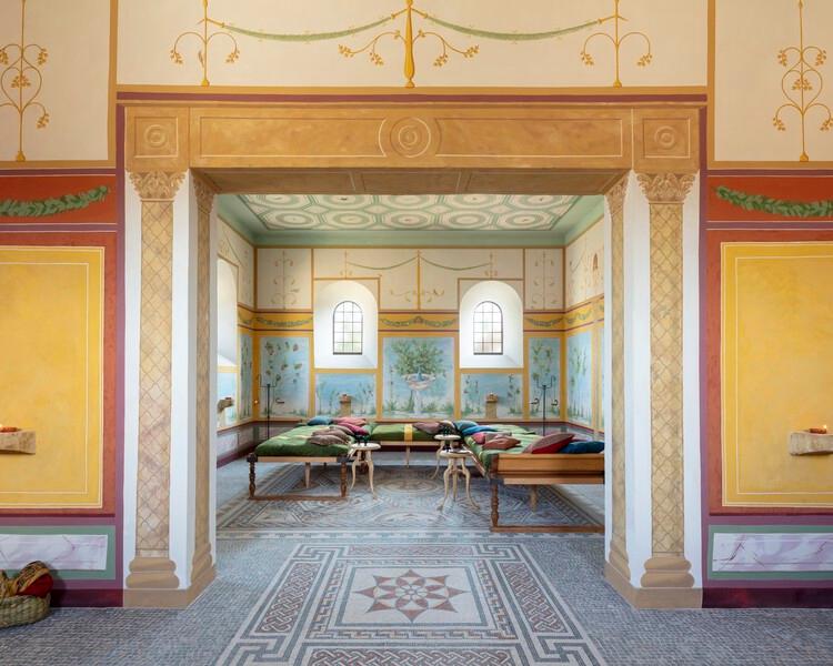 罗马别墅博物馆通过保存和展示这些考古发现,来提升人们对罗马统治时期下的英国的了解。包括浴室在内的部分别墅遗址展览在博物馆的中心位置展出。在馆内可以随时看到罗马别墅的全比例重建,而剩余的部分别墅遗迹则被重新掩埋保存。上方有趣的景观设计让游客可以欣赏到下方的全规模遗迹。对罗马别墅的重建使我们能够通过对罗马建筑技术进行详细研究,探索对工艺、背景和历史的热情,从而创造一个 1:1 的工艺作品。